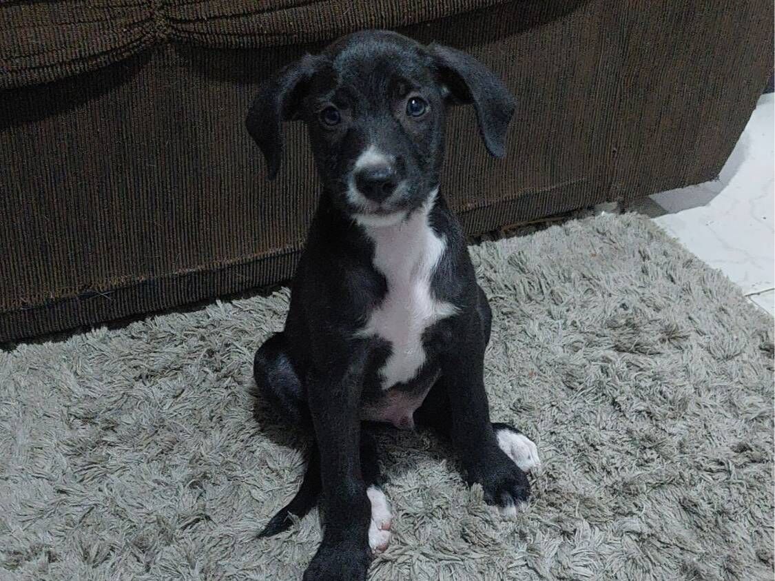 Cachorro médio, 2 a 6 meses, SRD-ViraLata, cor Branca/Preta.